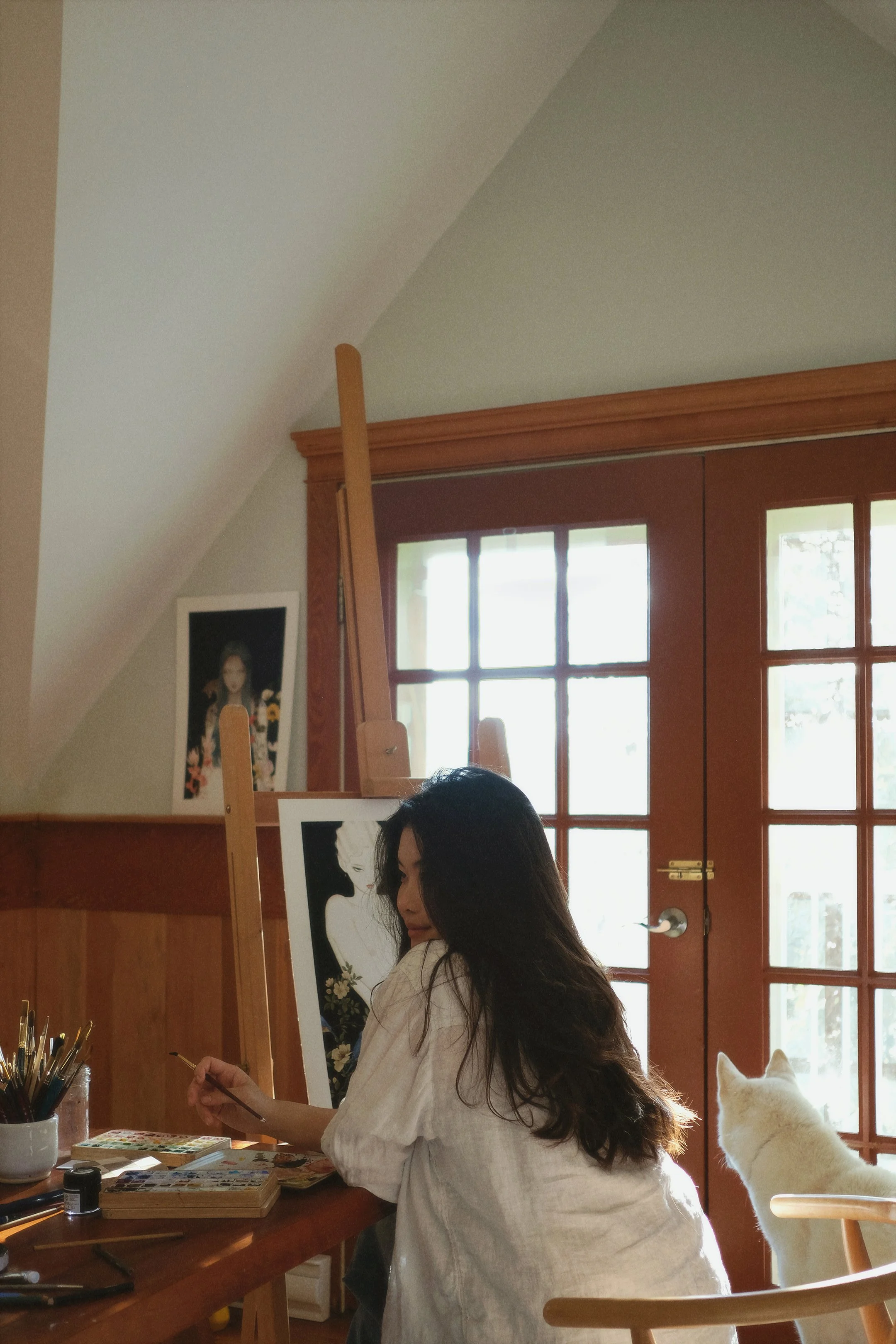 I am a painter living in the countryside of Vancouver Island with my partner, our dog, two cats, and six chickens.